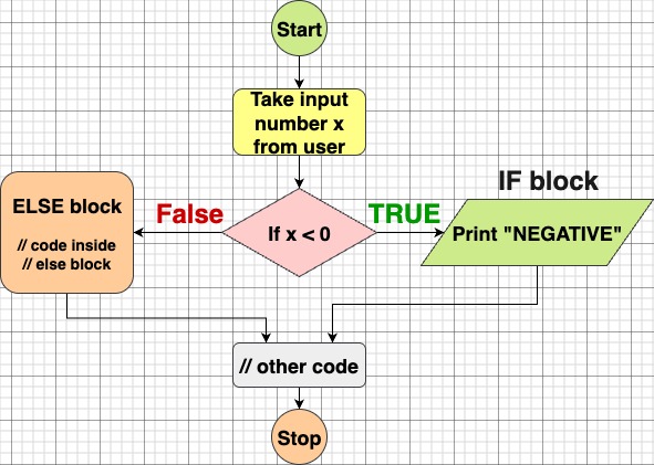 cout << "Negative";runs. - If it’s false, nothing happens (the program continues).